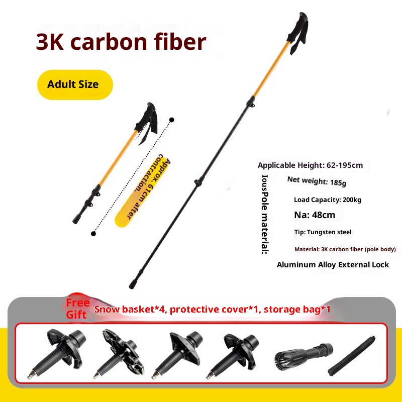 001 Factory Direct Supply Carbon Fiber Ultra-Light Telescopic Hiking Lightweight Portable Outdoor Climbing Trekking Folding