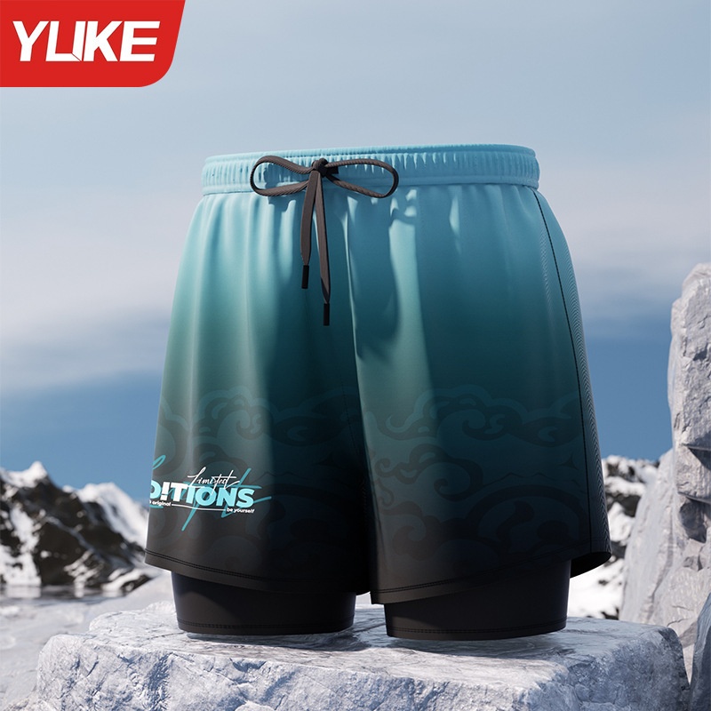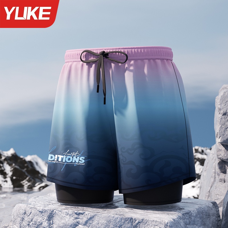 001 Men's Swimming Trunks Adult Five-Point Double-Layer Anti-Embarrassment Professional Training Quick-Dry Plus Size Beach