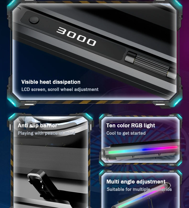 17 Gaming Laptop Cooler with RGB Light HD Display Laptop Cooling Pad 5 Angle Adjustable Notebook Cooler Stand for 15-21'' Computer