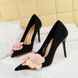 1829-H57 Koreanesch Versioun modesch séiss schlank super héich Heels, Veloursleder, hell Mond spitz, faarweg blockéiert Blummen-Single