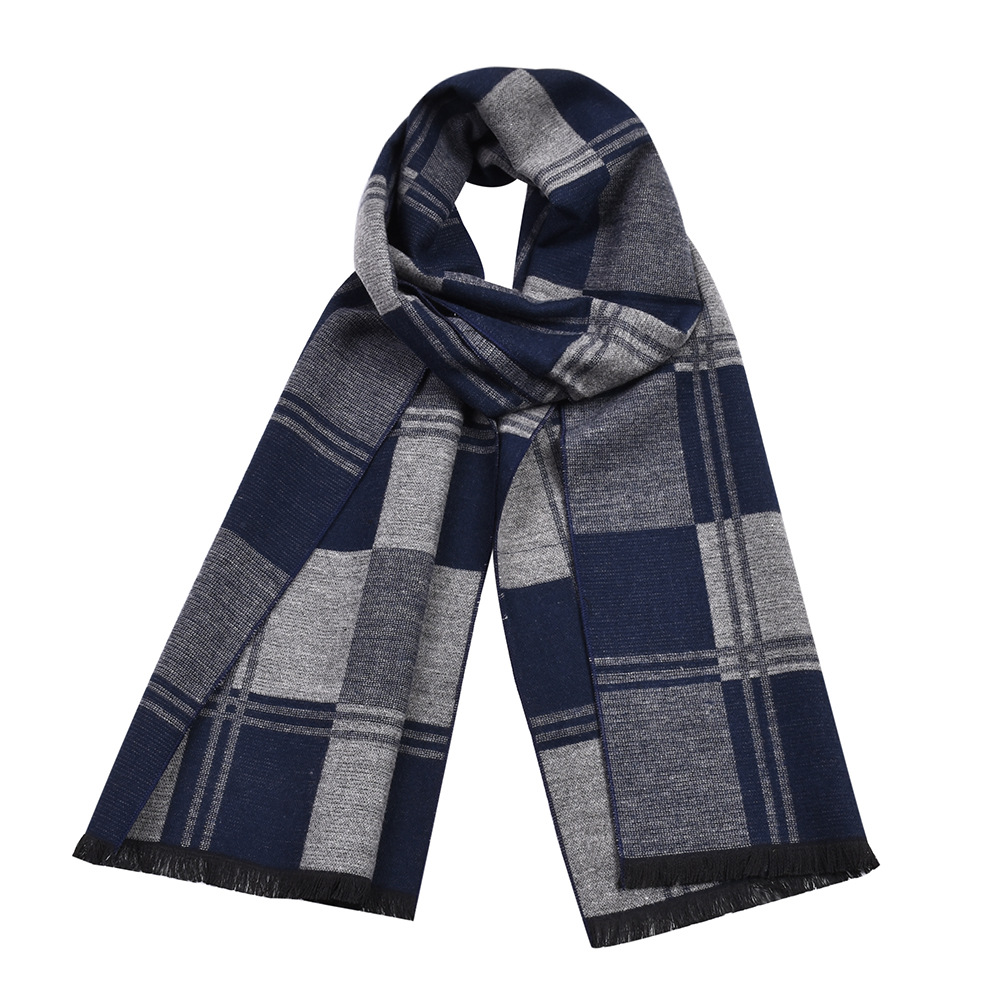 2022 New checkered scarf with double-sided imitation cashmere for autumn and winter warmth, men's shawl