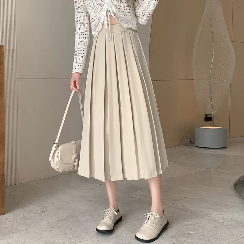 2023 Spring and Summer New Style with Shirt Coffee Color Pleated Half S Women's High Waist a Word in the Long Half214