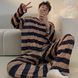 2024 New Gold Velvet Couple Double Long Two Piece Sleepwear with Striped Printed Round Neck Hoodie for Outerwear Home Furnishings