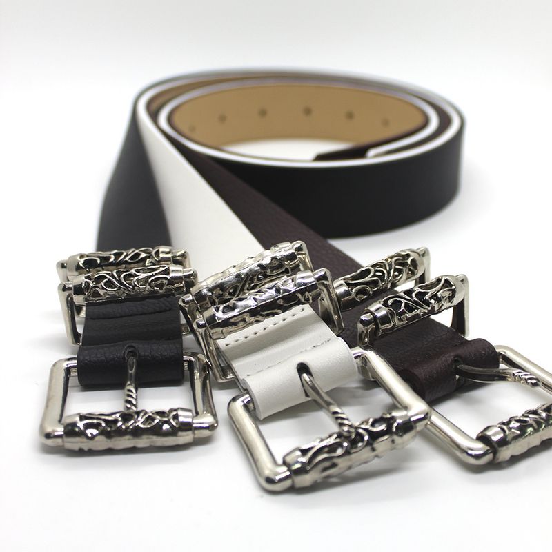 2024 Neie Sëlwerlegierung Geschnëtzte Roller Hollow Cro Nadelschnalle Gürtel Punk High Street Männer- a Fraemodetrend