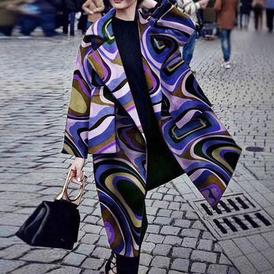 2025 Autumn And Winter Women's Casual Long Printed Warm Woolen Trench Coat