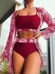 2025 New Maple Leaf Print Long Sleeve Patchwork Bikini Three-Piece Set High Waist Swimsuit For Women