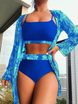 2025 New Maple Leaf Print Long Sleeve Patchwork Bikini Three-Piece Set High Waist Swimsuit for Women