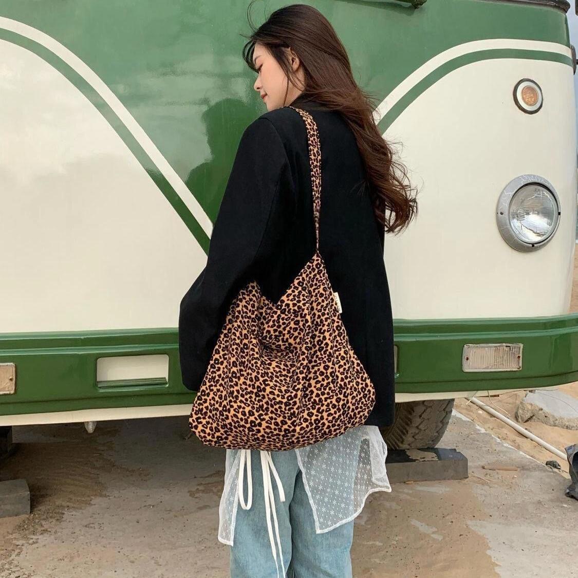 2025 South Korean Multifunctional Fashionable Leopard Print Single-shoulder Student Canvas Shopping Bag, Large Capacity, Fashionable Niche Design.