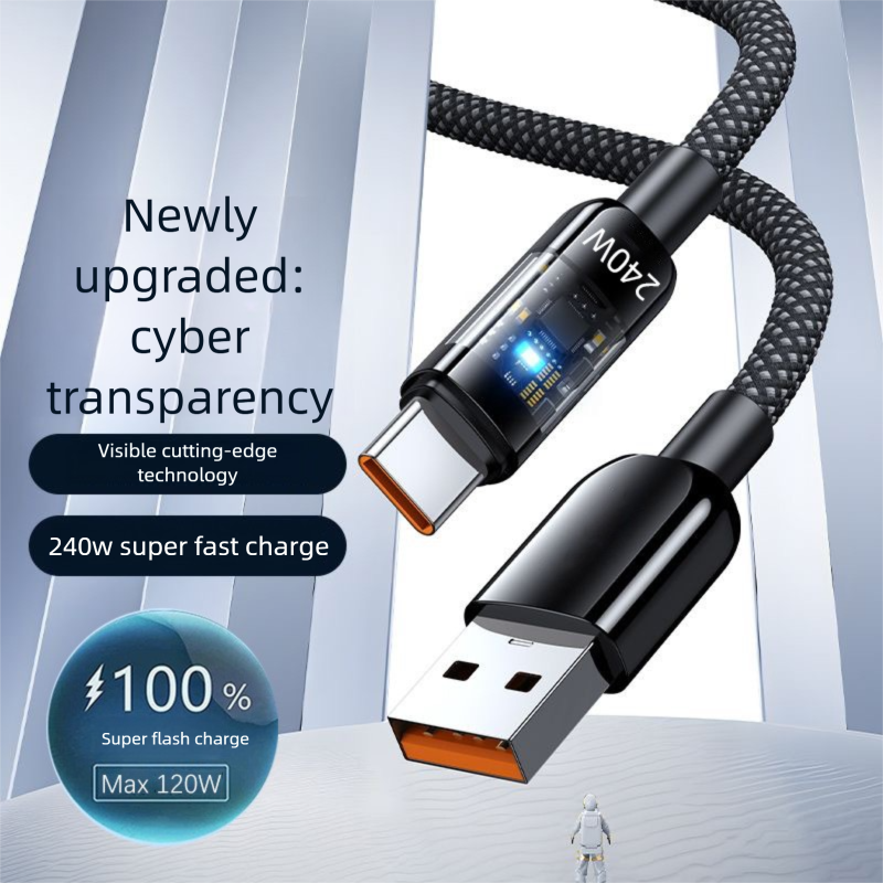 240W Transparent Data Cable Luminous Cable 10A Super Fast Charging Suitable for Huawei Honor Typec Flash Charging Cable