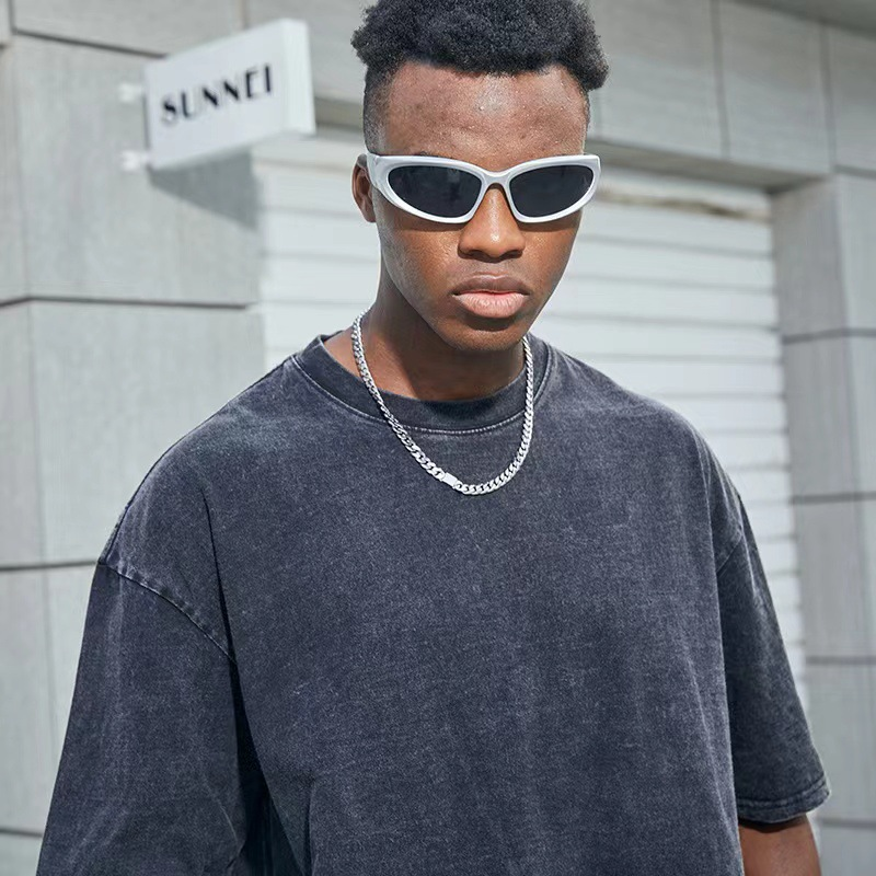 270g trendy brand wax dyed distressed shoulder length short sleeved T-shirt, unisex loose hip-hop style Instagram T-shirt