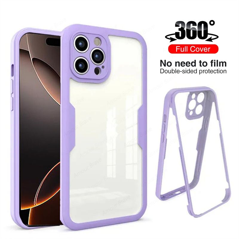 360 Full Body Phone Case For IPhone 16 15 14 13 12 11 Pro Max Plus Clear Shockproof Front Back Protection Cover Phone Accessorie