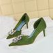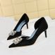 6168-AK58 Banquet Women's High Heel Hand Scratch Pattern Wrinkled Fabric Shallow Mouth Pointed Toe Side Hollow