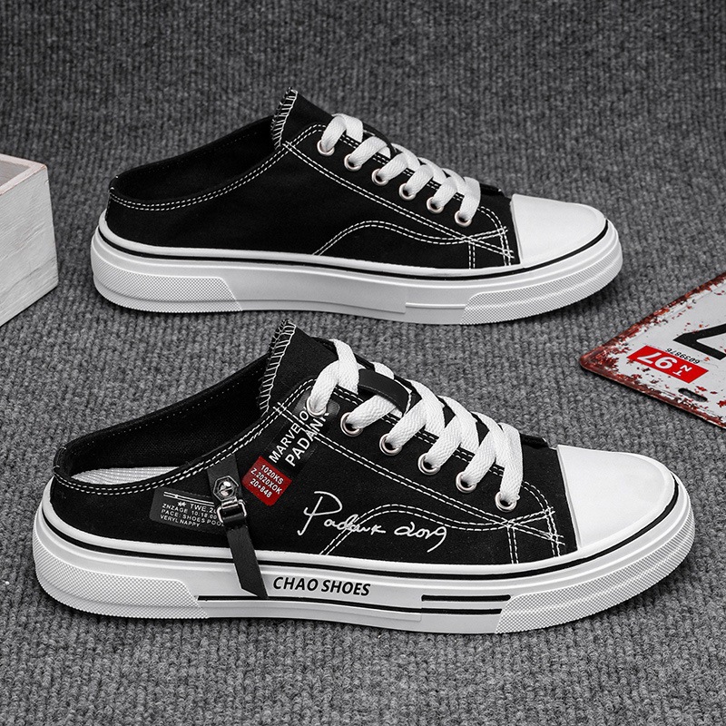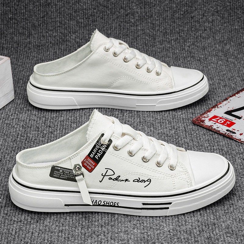Artistic style canvas half trailer shoes for men's summer men's shoes 2024 new Korean version casual trendy shoes for teenagers and students