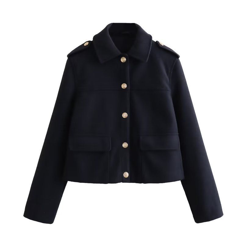 Autumn New Women's Fashion Versatile Turn-down Collar Gold Button Pocket Long Sleeve Soft Jacket Coat