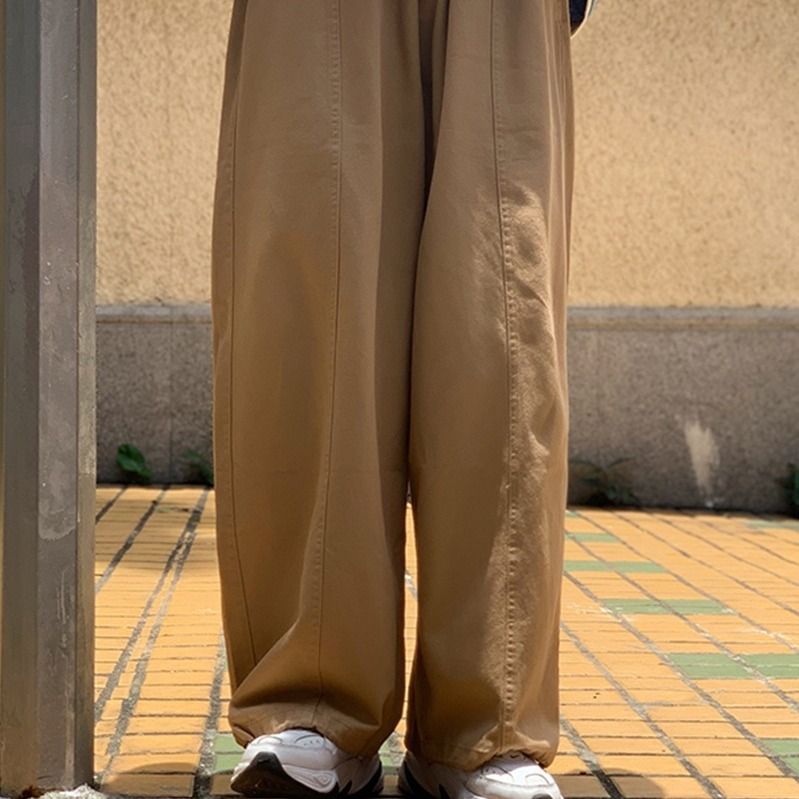 Leg tied straight leg workwear pants men ins high street trendy brand loose wide leg khaki casual pants