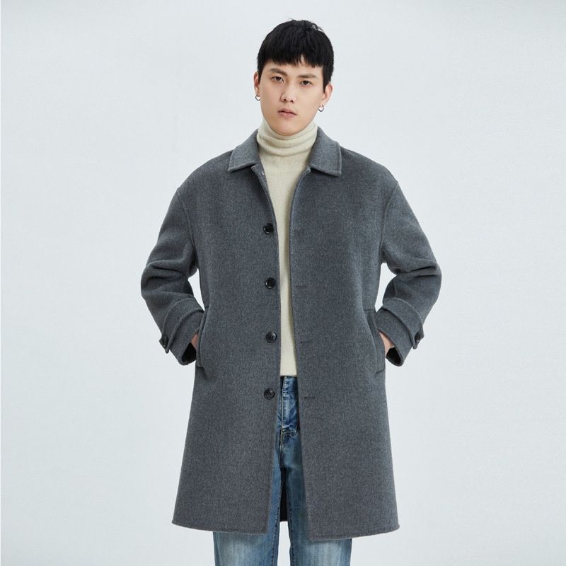 boy Boy Autumn Winter Pure Wool Men's Mid-Length Over-the-Knee Double-Sided Cashmere Jacket Business Suit Woolen Trench Coat