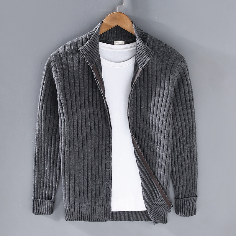 Product Source Category:In Stock,Material function:Machine washable,Item Number:8525-DD,Design 1:Cardigan,Design:Loose Fit,Collar Style:Mock Neck,Sleeve Length:Long Sleeve,Thickness:Thickened,Style:British Style,Design details:Twisted Flower,Bargain Category:Fashionable Urban 24-35 Years Old,Is it in stock?:yes,Inventory Type:Complete order,Suitable for everyone:Youth,Year/Season of Release:Winter 2023,Fabric Name:Cotton,Main fabric composition:Cotton,Content of the main fabric components:100%,Applicable Scenarios:Casual,Suitable for the season:Spring and Autumn Season,Applicable to the target audience:Youth,Color:Light gray, black, dark blue, charcoal gray,Size:M,L,XL,2XL,3XL,Craftsmanship:Twisted Flower,Main downstream platforms:, , , , Independent Station, ,Main sales regions:Africa, Europe, South America, Southeast Asia, North America, Northeast Asia, Middle East,We have authorized private labels available:No,Is it exclusively for cross-border export supply?:yes,Original Design Source:yes,Is there a quality inspection report?:No,Suitable age group:adult,Applicable Gender:Male,Product Category:Knit Sweater