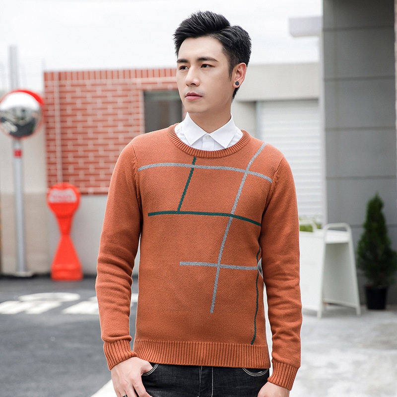 boy Boy Boy Boy Winter New Round Neck For Men Korean Style Color Block Pullover Fashion Trendy Long Sleeve Warm Men's Knitted Sweater