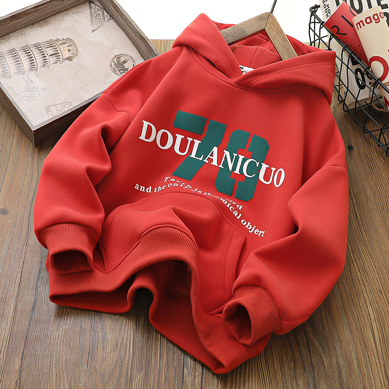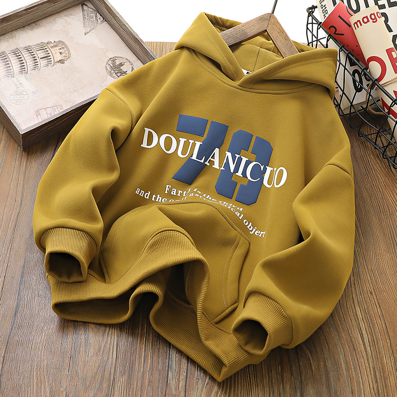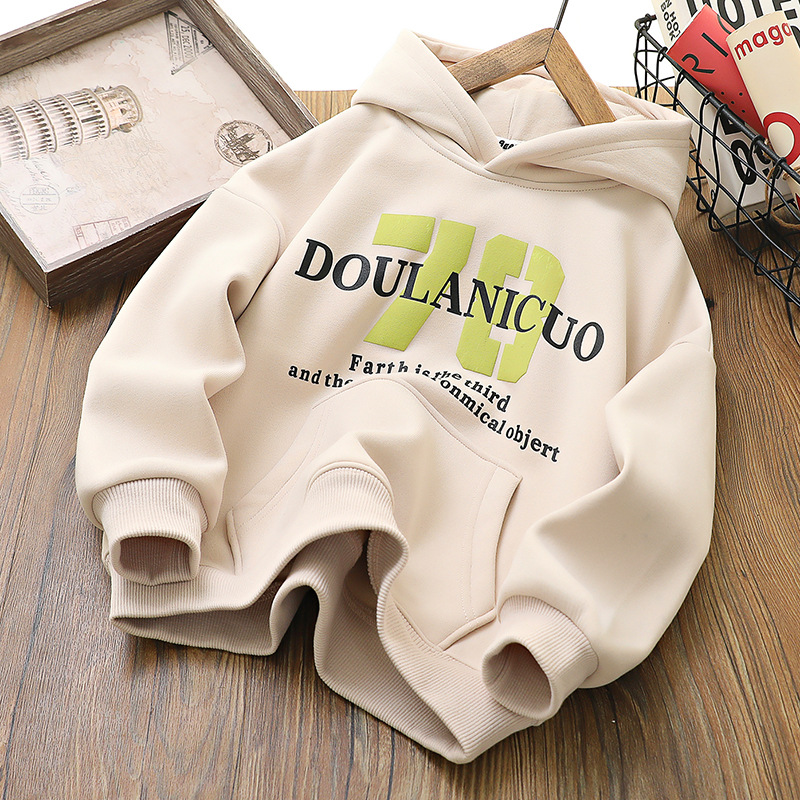 Boys' hoodie 2023 new Korean version auumn winer op, medium size children's hooded plush and hick