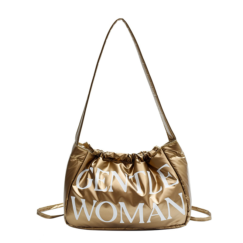 Candy colored new letter printed drawstring shoulder niche design dumpling women's armpit bag