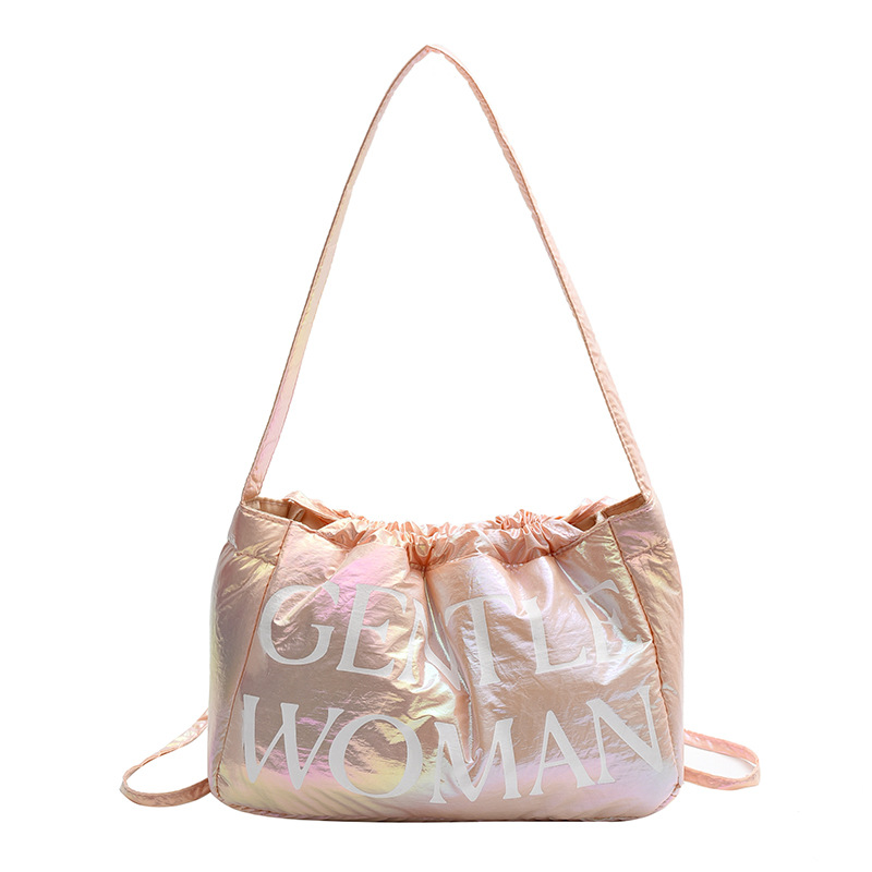 Candy colored women's bag new letter printed drawstring shoulder bag niche design dumpling bag women's armpit bag