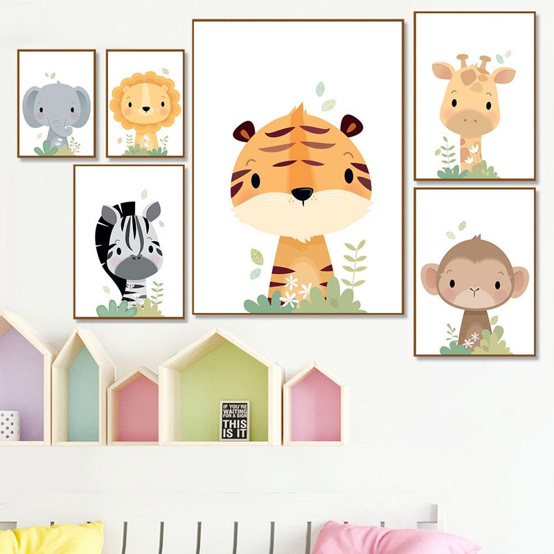 Cartoon Jungle Animals Giraffe Elephant Zebra Children's Bedroom Poster Canvas Hanging Decorative Painting Core Printing