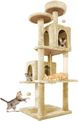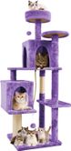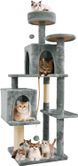 【HIGH QUALITY MATERIALS】 cat tree features a plush covering with 600GSM softness, ensuring comfort. All scratching posts are made from durable natural sisal, offering lasting quality.