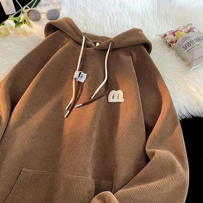 Corduroy Hooded Sweatshirt For Men, Autumn 2023 New Trendy Brand Oversized American Pullover Top