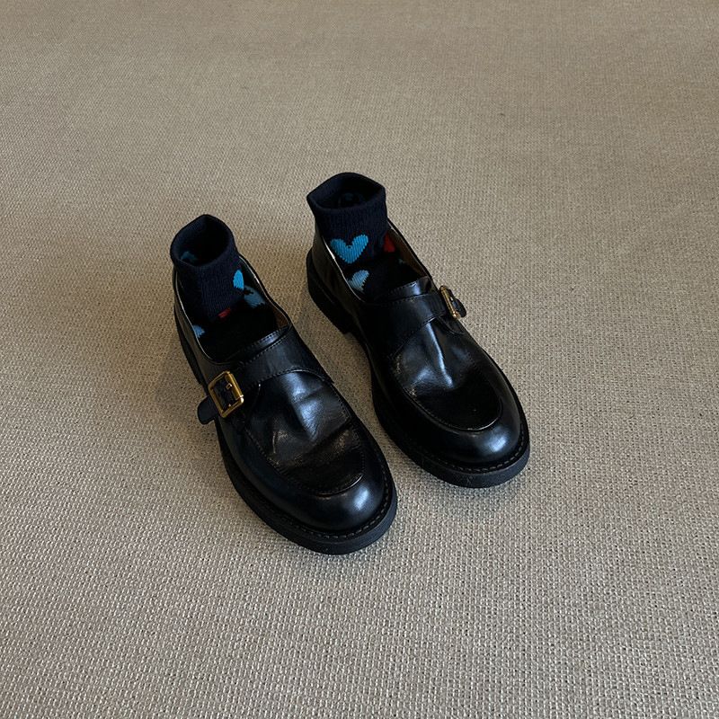 Cowhide 2025 Genuine Thick-Soled Loafers Spring And Autumn Single Black Versatile British College Style Women's Leather