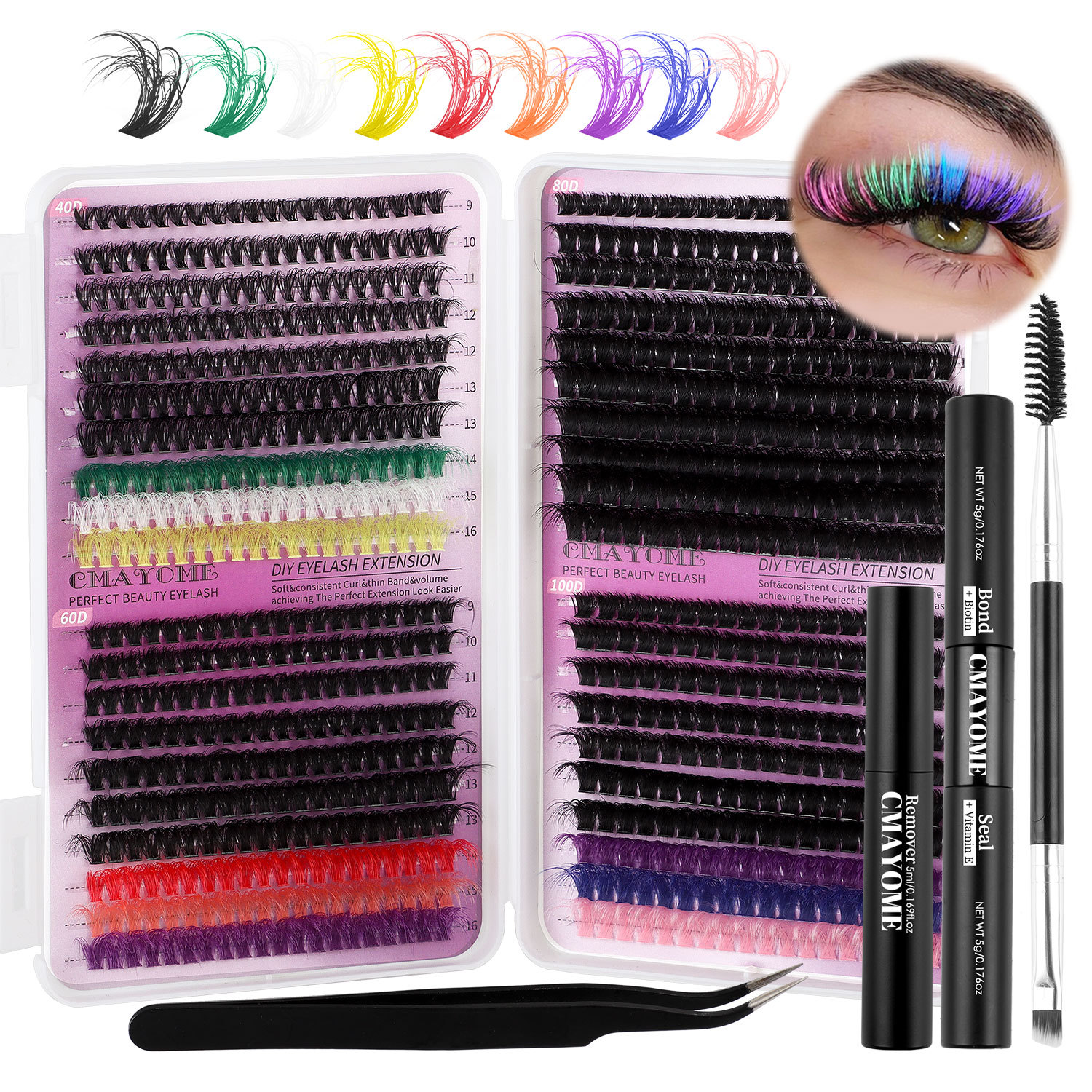 Grenziwwerschreidend nei 780 Cluster vun dichten D gekrëmmte Faarf Eenzelcluster falsch Wimperen Set 40D100DDIY segmentéiert Wimperen