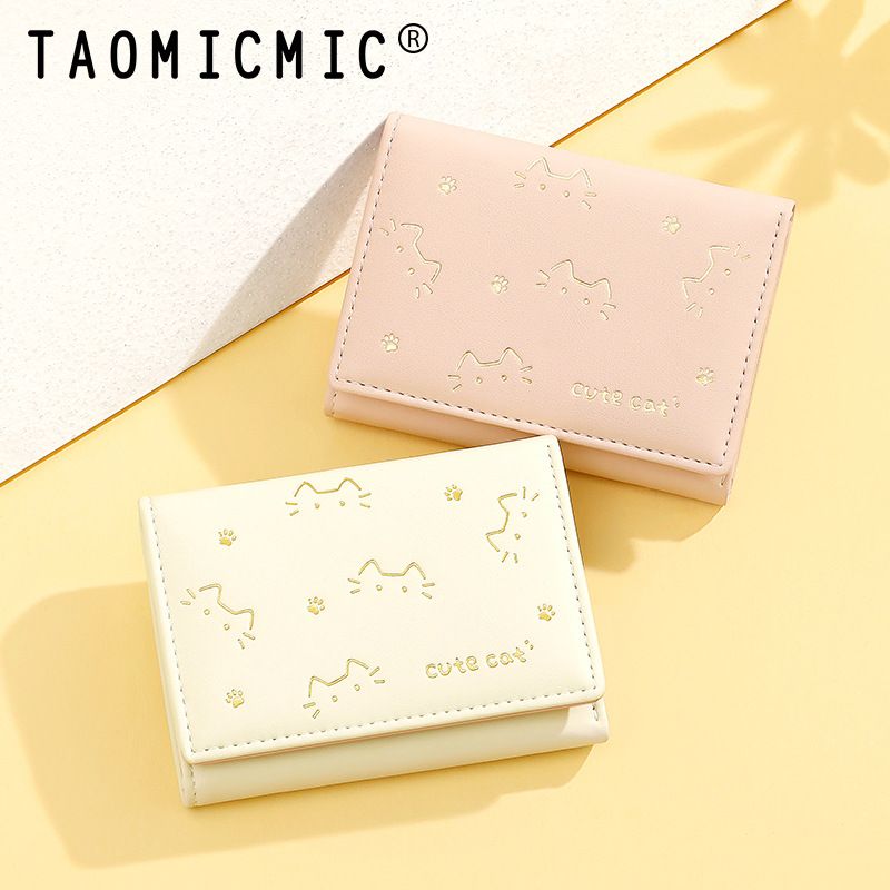Cute Little Cat Short Women's PU Leather Foldable 70% Off Coin Card Holder Wallet
