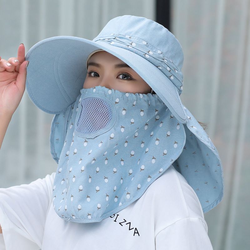 Gréisst : 360 degree sun protection with a large brimmed hat and a face covering