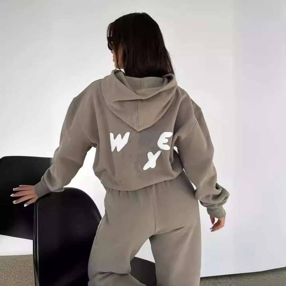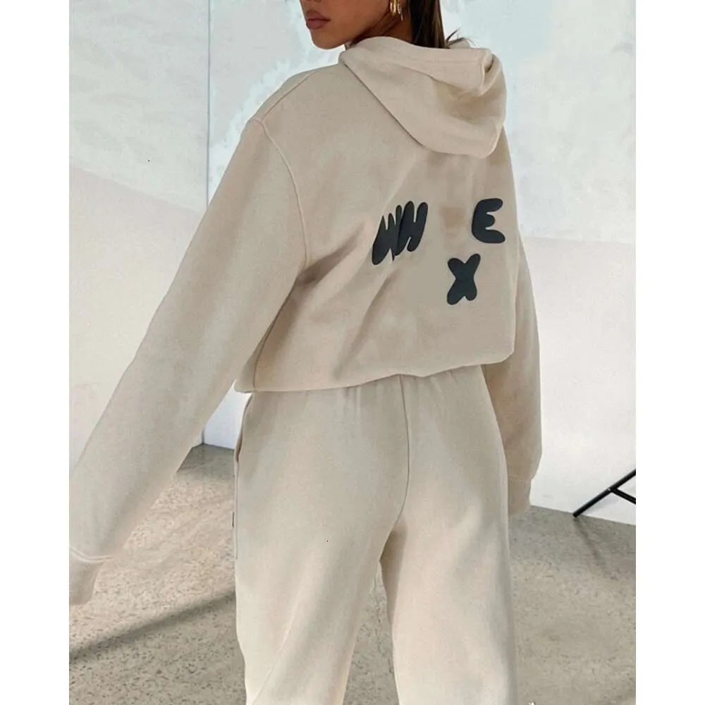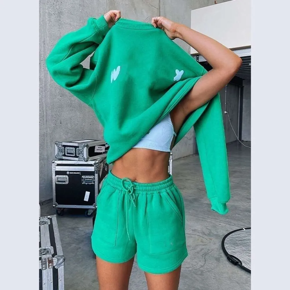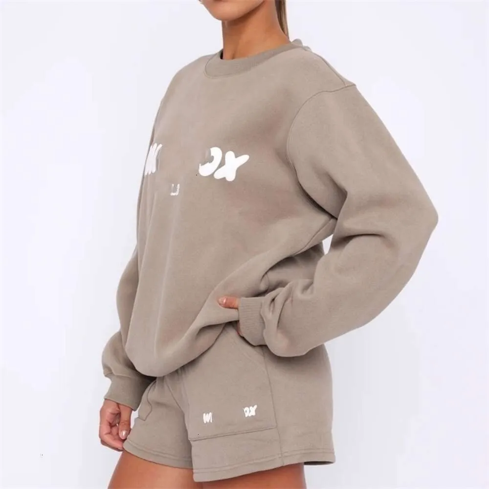 Damen Tracuts Zwee-Stéck Set Designer Nei Hierscht Wanter Laangärm Shorts Hosen Moud Sport Schaumstoff Pullover Kapuzen