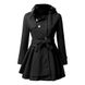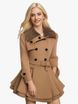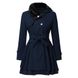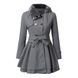 Damenkleeder Gürtel Slim Fit Mëttellängt Wollmantel mat groussem Rock a Pelzkragen Duebelknäppchen Wollmantel
