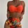 Dammekleeder Bikini mat Bedrécktem Héichtaille Split Badekostüm Frae-Tube-Top-Bikini