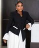 Dammekleeder Fréijoer a Summer Schwaarz Grouss Gréisst Moud Ausgeklappt Ärmel Top & Plisséiert Rock Set