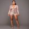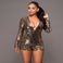 Dammekleeder Pailletten-Zweideeler-Shorts Déif V-Ausschnëtt Récklos Laangärm Reißverschluss Temperament Sexy Jumpsuit