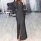 Dammen laange Rock Oweskleed déif V-Ausschnëtt glänzend Kleed Kleed sexy Kleed fir den Owesiessen