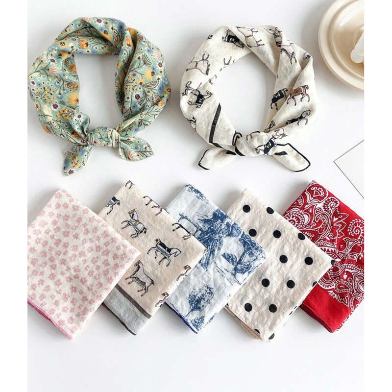 Cotton scarves, women's small square scarves, summer new styles, fashionable and versatile headscarves, digital printed cotton and linen scarves