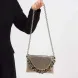 Designer Handtasche fir Fraen Chunky Metallic Sier Paillettenbedeckt Schlosskette Schëller Crossbody Taschen Gratis Versand