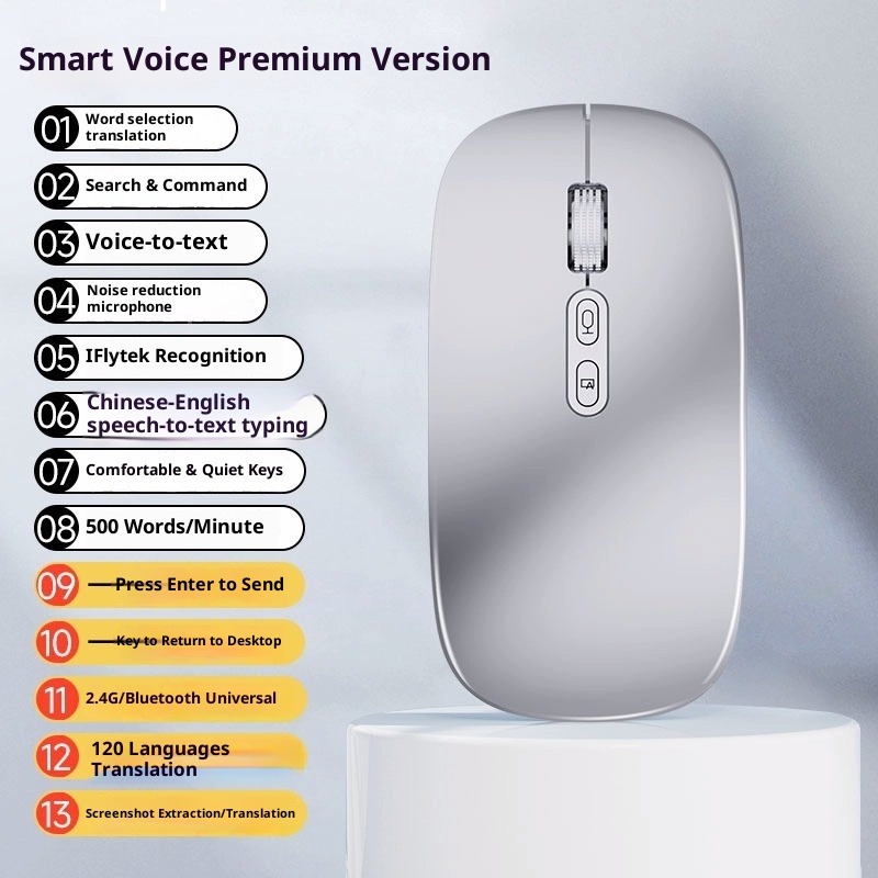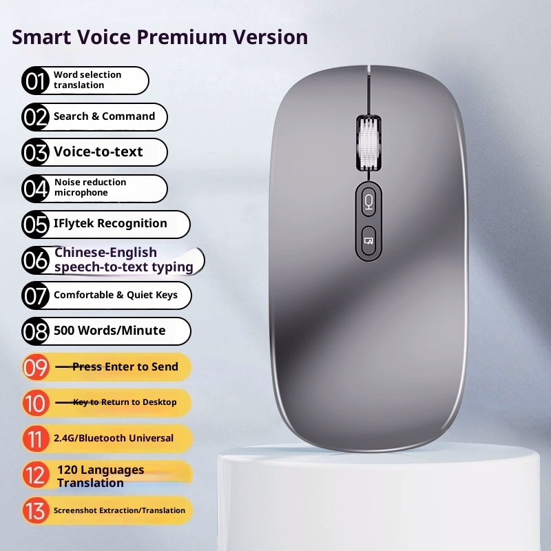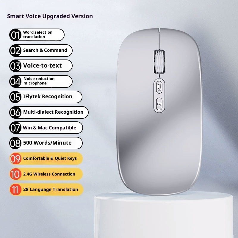 Digitex Digitex AI Smart Wireless Bluetooth Mouse Voice Control Input Text Translation Rechargeable USB Connection To Computer