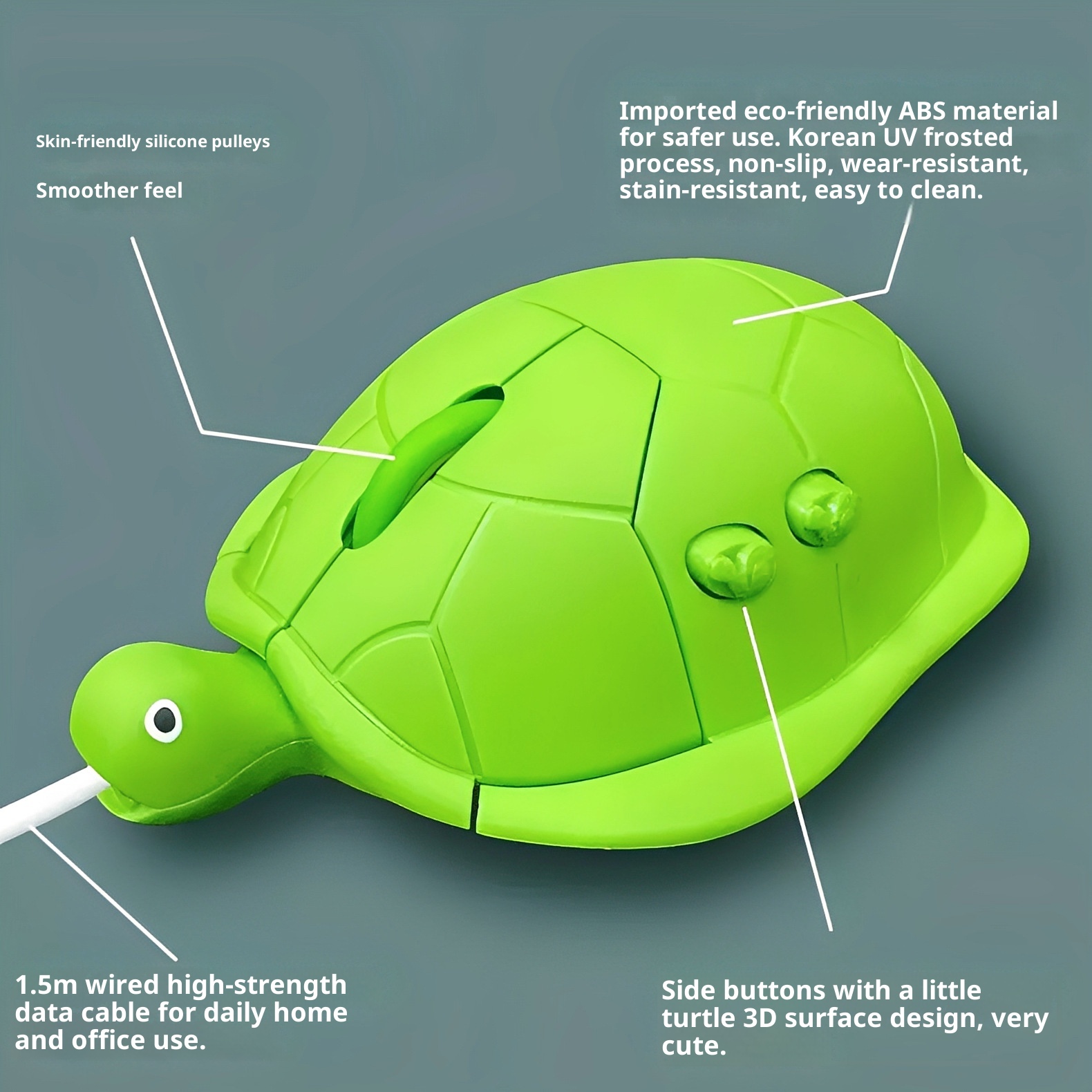 Brand:other,Model Number:985,Item Number:F96958698H8JMH,Time to market:other,Product Source Category:In Stock,Mouse size:other,Number of Buttons:4 pieces,Connection method:Bluetooth USB Wireless 2.4G,working method:Optical,Optical resolution:other,Adjustable resolution:other,Operating distance:other,Direction of the scroll wheel:other,Long cable length:other,Product Dimensions:other,Product weight:other,Custom Processing:No,Custom Printing:Not possible,Fastest shipping time:other,Does it support dropshipping?:Not supported,Invoice:other,After-sales service:other,Package contents list:other,Color:Turtle Mouse Wired Version 1.2m, Turtle Mouse Wireless Version 2.4G with Battery, Turtle Mouse Wireless Version - Rechargeable Version with Cable, Wired Version Large 1.5m, Wireless Battery Version Large with Battery, Wireless Rechargeable Version Large with Cable,Interface:Official Standard Configuration,Is it exclusively for cross-border export supply?:No