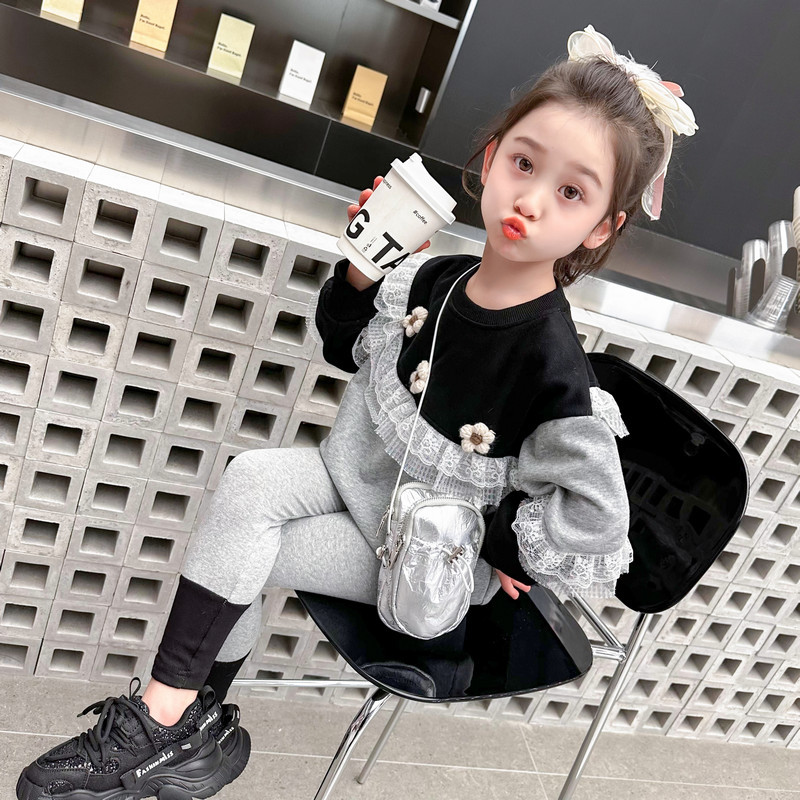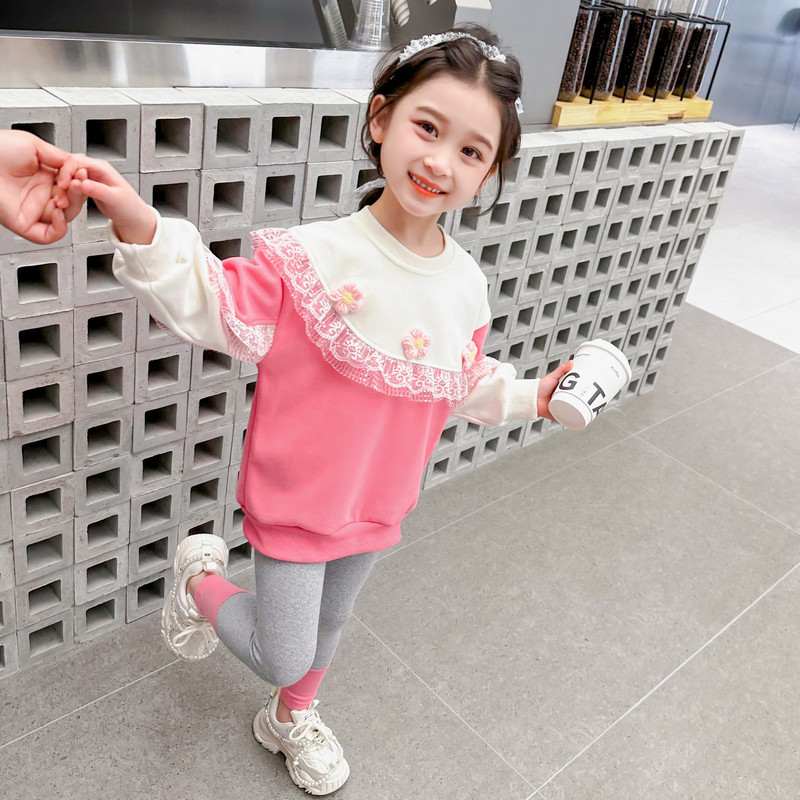 Girls' Three Flowers Underpants Set 2024 Spring New Fashionable and Fashionable Children's and Girls' Sports Two Piece Set