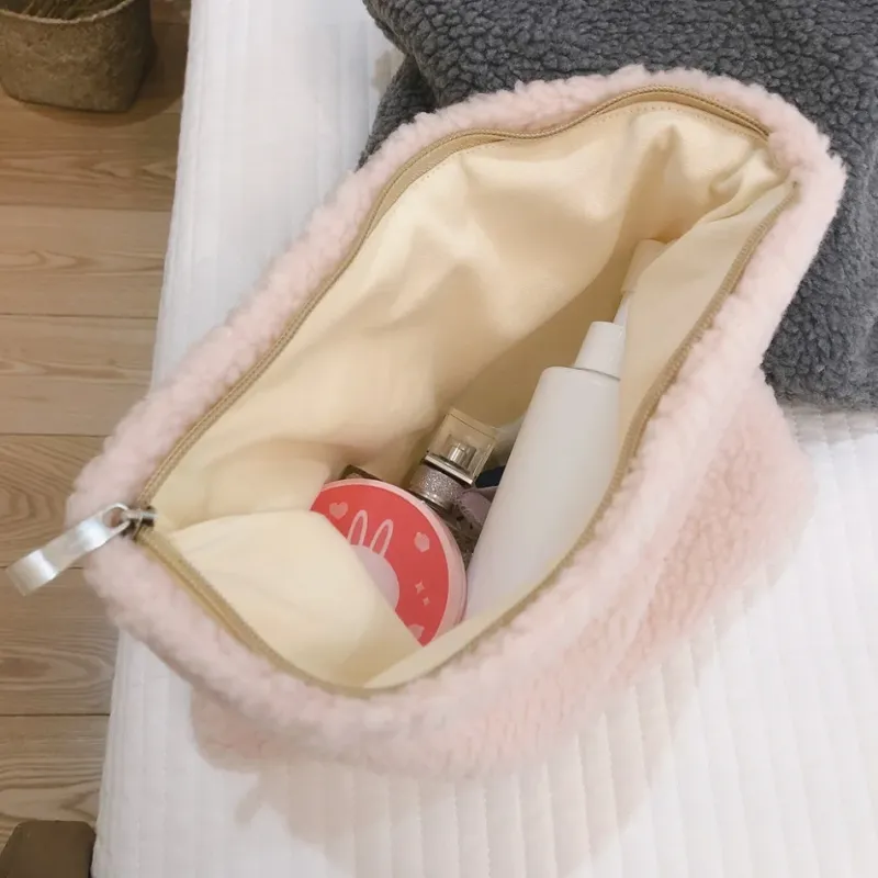 Simple Plush Cosmetic Makeup Bags Women Pencil Case Travel Bag Pouch Soft Fashion Travel Toiletry Beauty Case Neceser Organizer