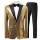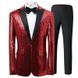 Elegant Stage Performance Suit With Glitter Lapel - Slim Fit Tuxedo For Wedding, Nightclub, Host & Groom