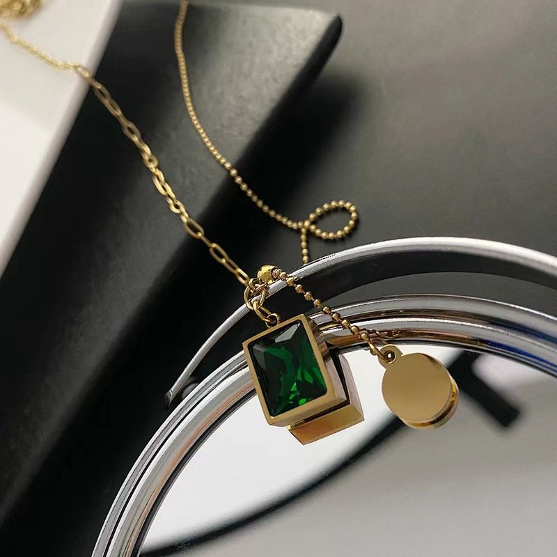 Emerald patchwork collarbone chain for women, simple and niche, adjustable necklace, cool wind titanium steel neck