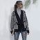 Europäesch an amerikanesch laangärmlech Pulloverjackett am Pied-de-poule-Stil fir Fraen