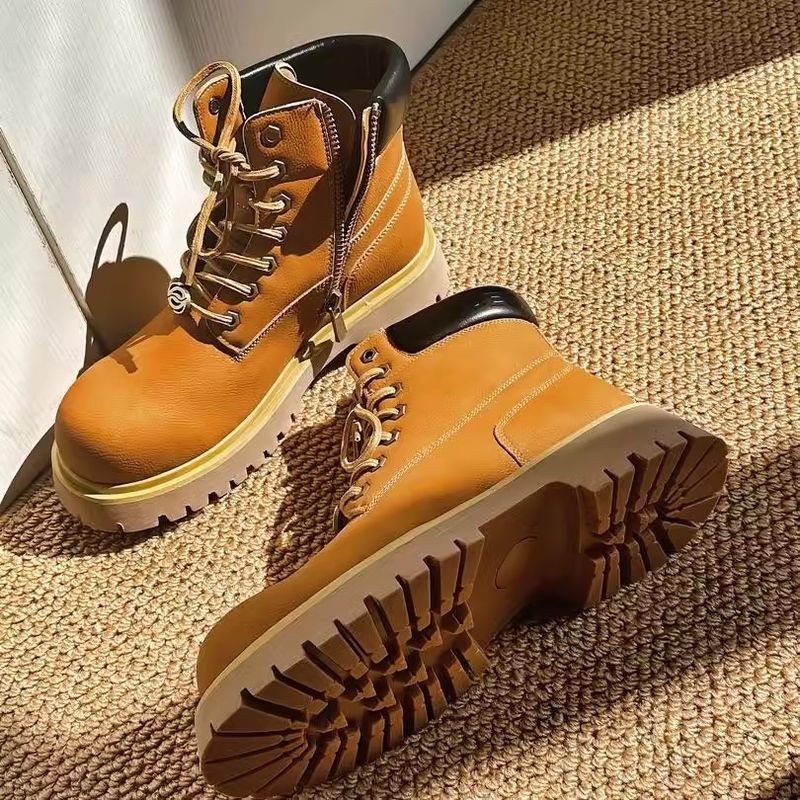 European Warm Series Frosted Top Layer Leather Thick Yellow Martin Boots Outdoor Unique Sole Casual Men's Autumn Winter Versatile Trendy_voghion.com