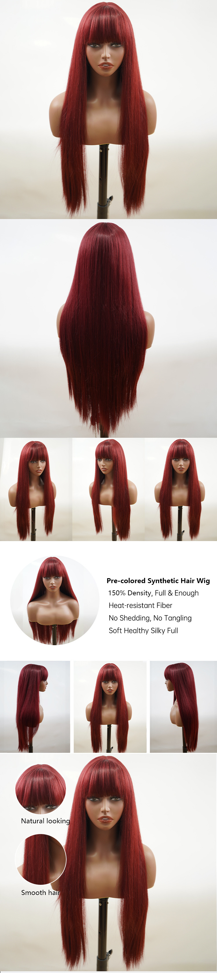 Fabréck Grousshandel Chemesch Faser Perück Kappbedeckung Héichtemperatur Drot 99J Bourgogne Loft Pony laang glat Hoer Mechanismus Mëtt Trennung Perücken