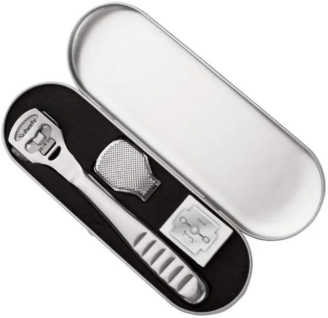 Foussraséierapparat fir Schwielen, Fersen, Harthautentferner, Hand, Féiss, Pediküre-Raséierapparat, Raséierapparat, Edelstahlgrëff, 10 Klingen, Fousspfleeg-Tools